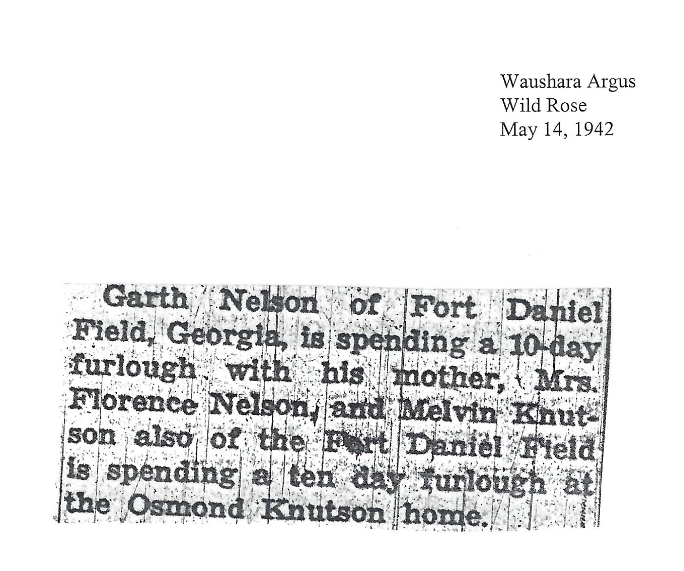 Garth Nelson & Melvin Knutson had 10 day furloughs May 1942